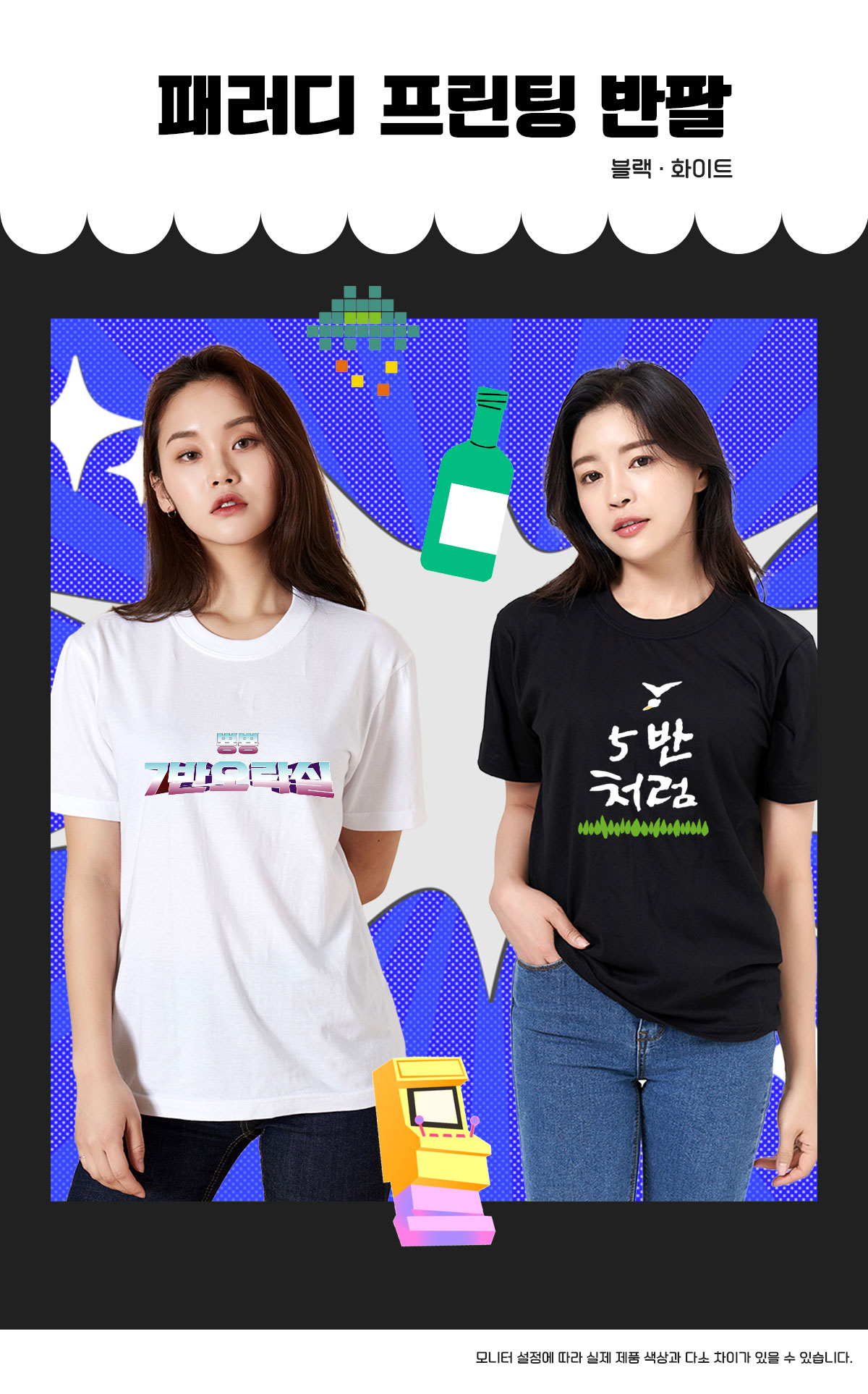 패러디 프린팅 티셔츠 반팔 반티 세트(화이트)