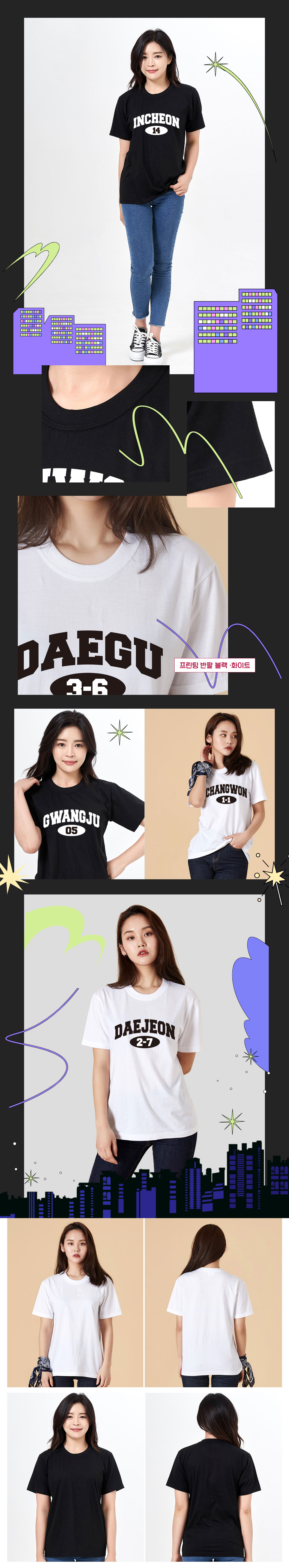 도시 프린팅 티셔츠 반팔 반티 세트(블랙)