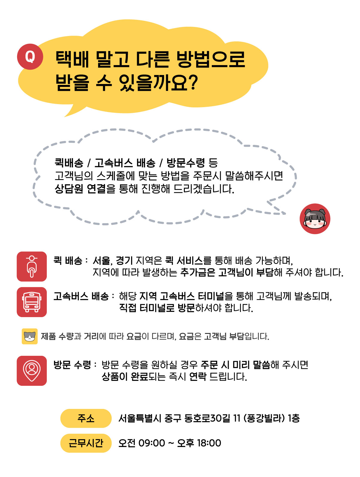 실제 입금자 성함과 주문서에 작성하신 입금자명이 다를 경우, 고객센터로 연락 부탁드립니다.