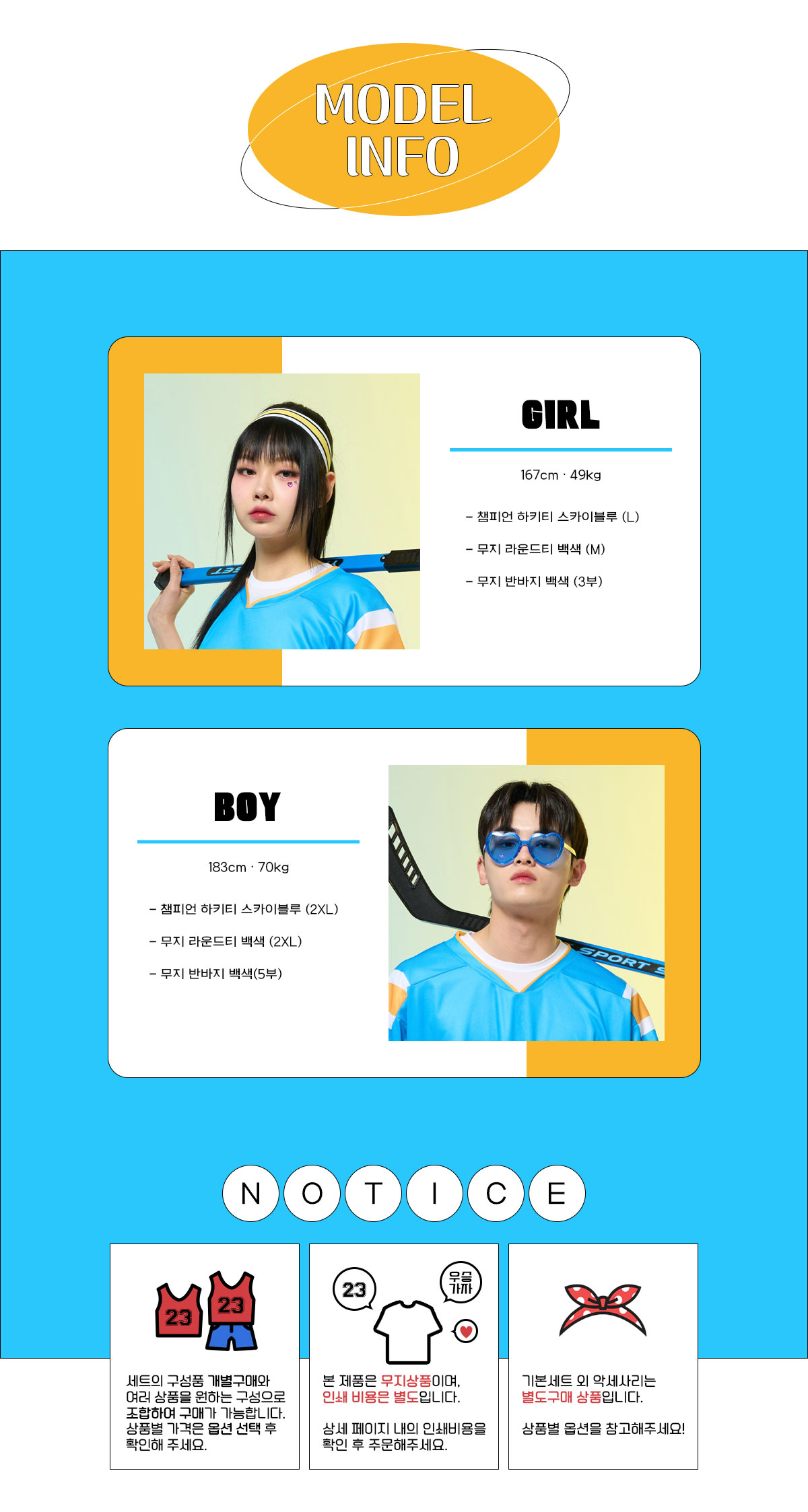 챔피언하키 스카이블루 반티 세트(상의기준)