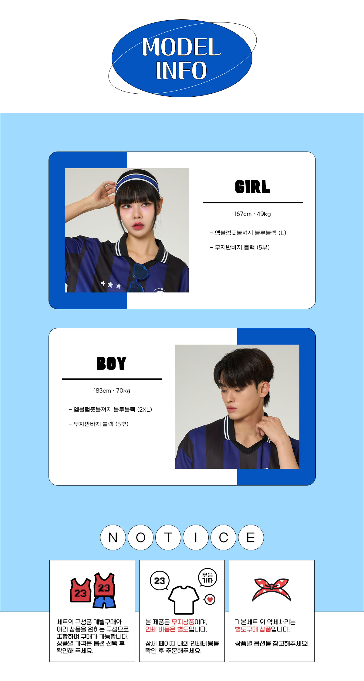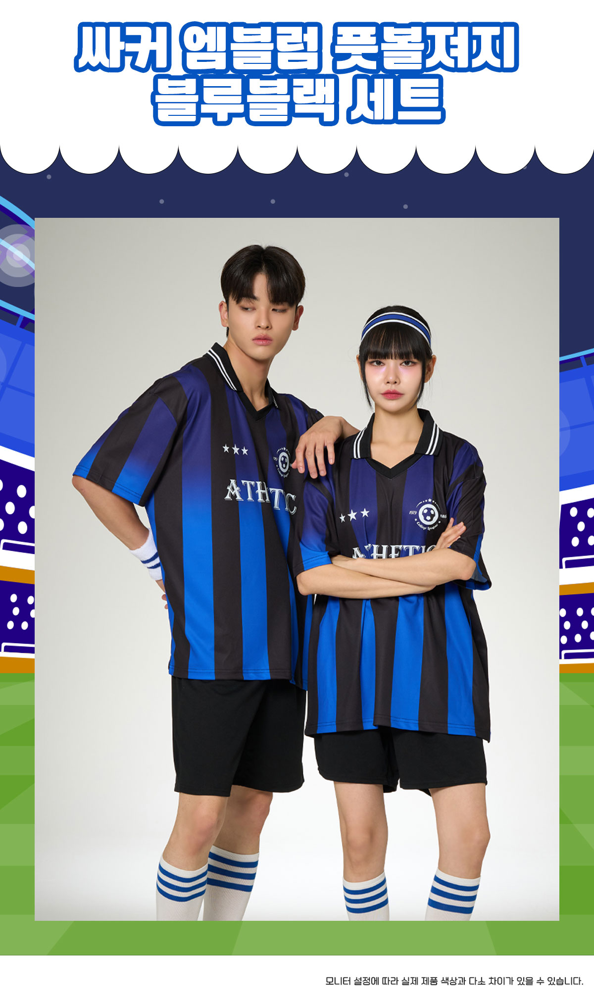 싸커 엠블럼 풋볼져지 블루블랙 반티 세트(상의기준)