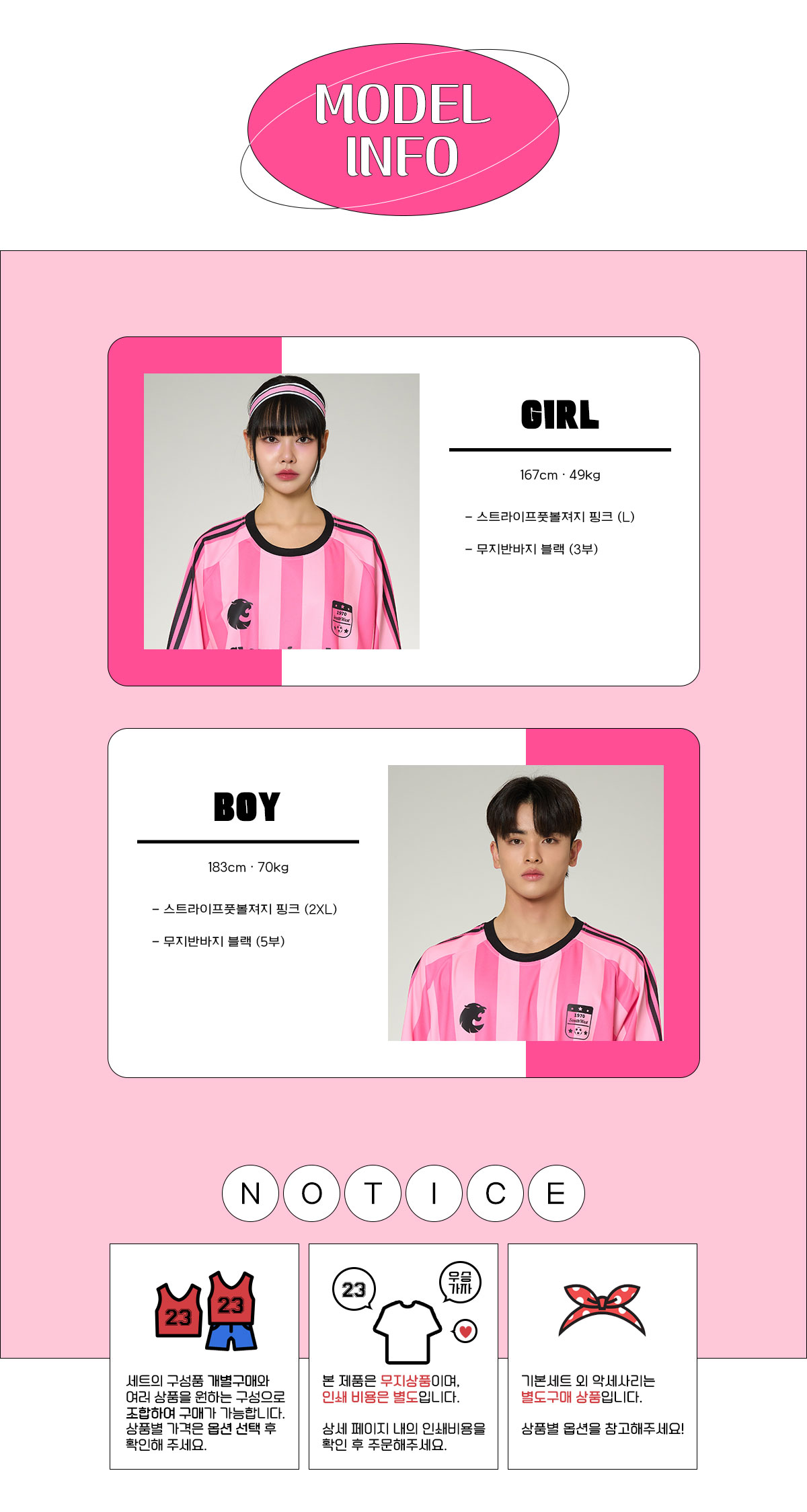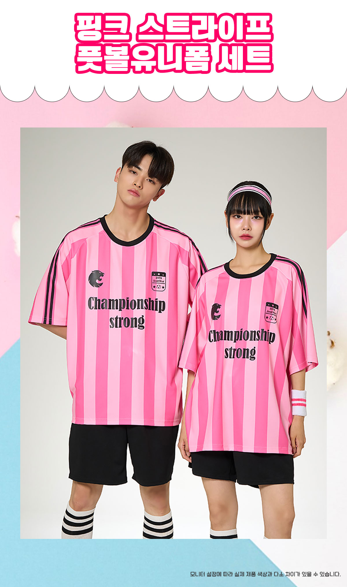 핑크 스트라이프 풋볼유니폼 반티 세트(상의기준)