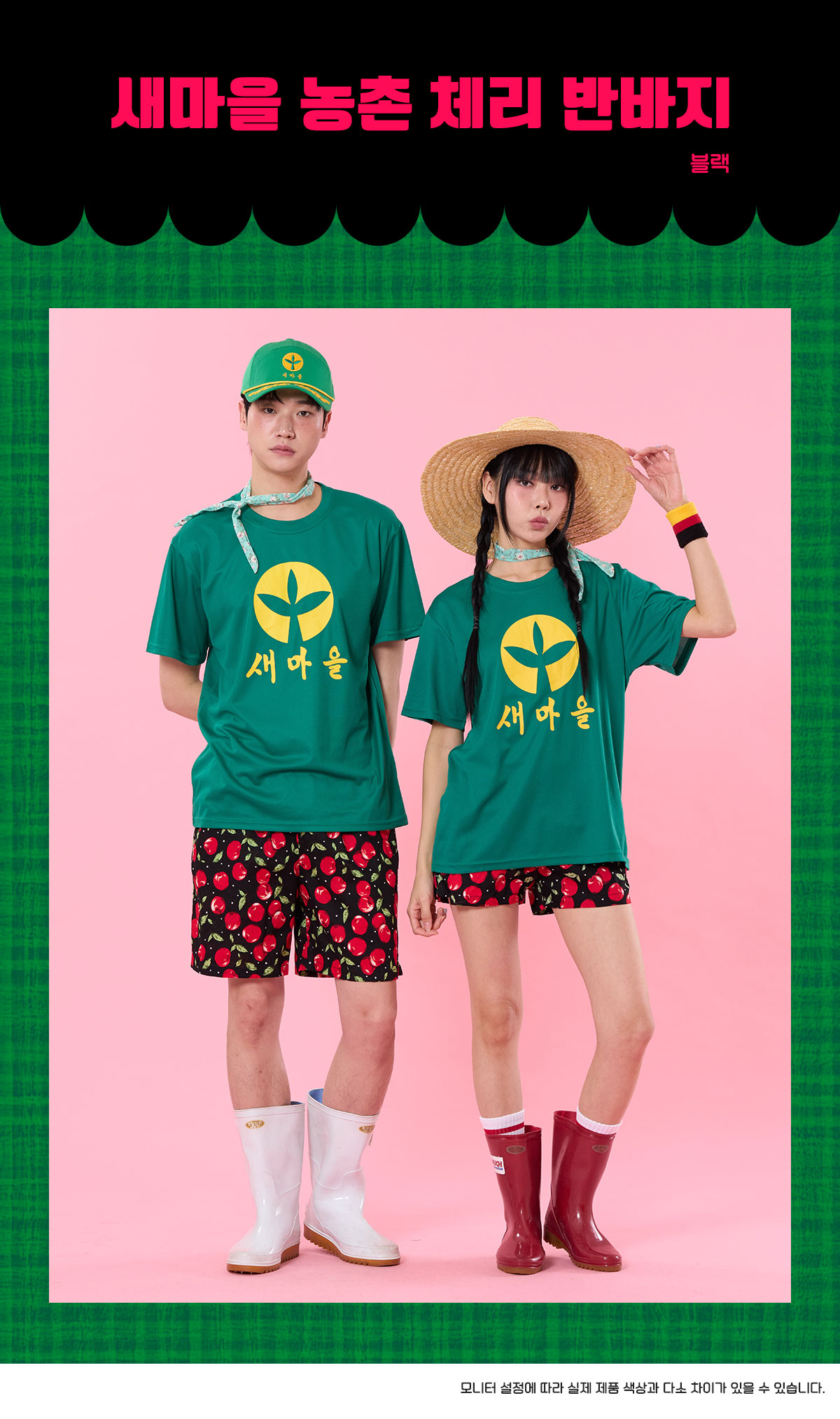 새마을 농촌 블랙 체리 반바지 반티 세트