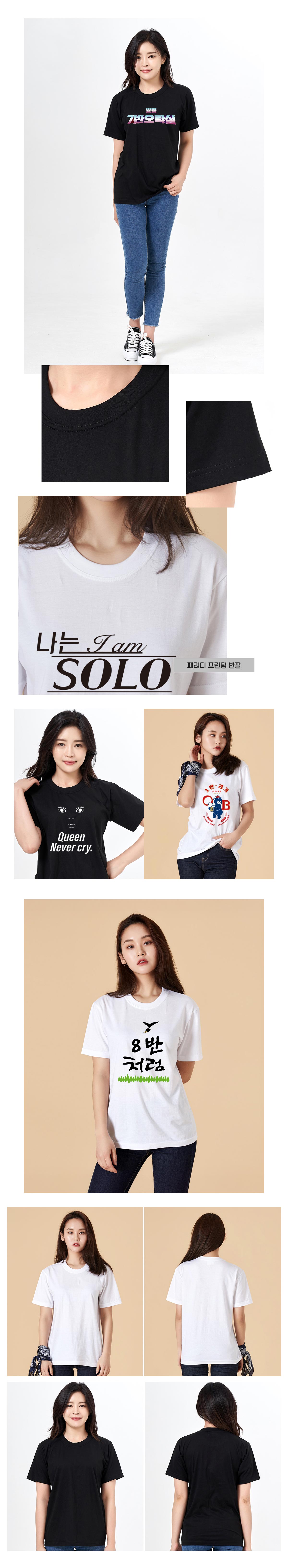 패러디 프린팅 티셔츠 반팔 반티 세트(화이트)